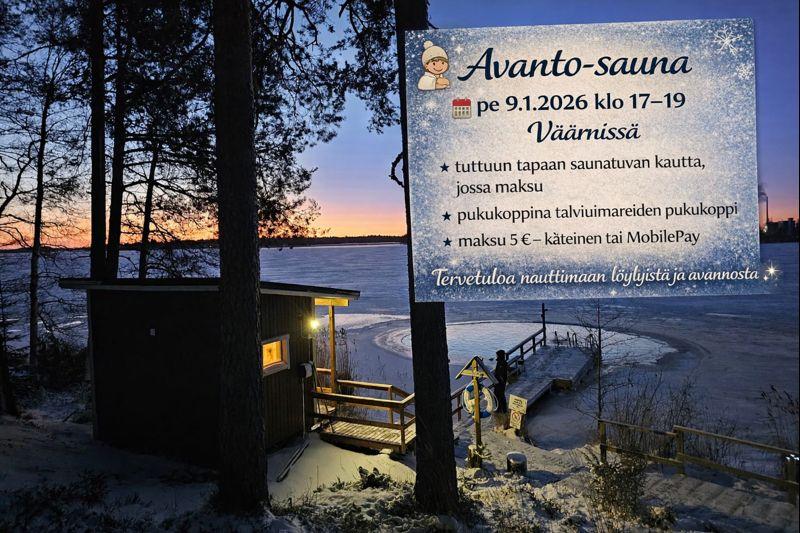 Avanto- sauna Väärnissä pe 9.1.2026 klo 17-19