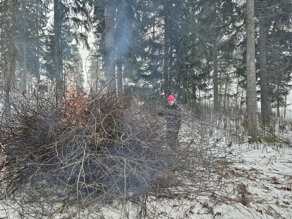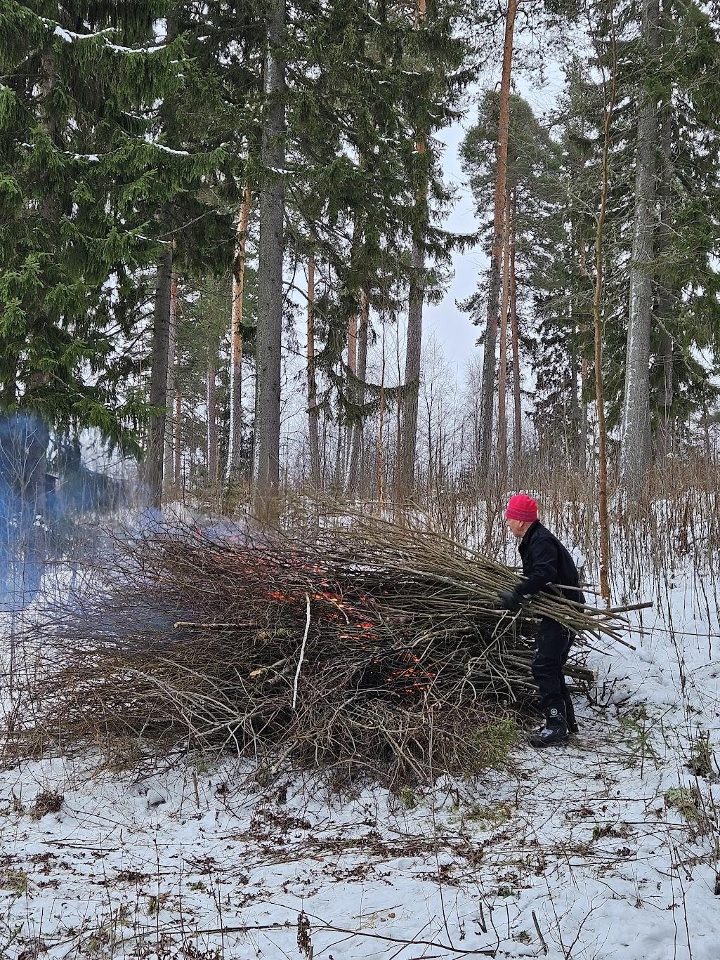 Risuja yritettiin polttaa jo tĂ€nÀÀn, mutta todettiin, ettĂ€ tuoreet risut eivĂ€t syty kovin helposti. KerĂ€ttĂ€vÀÀ jĂ€i vielĂ€ rantaan, ja niiden kokoamista kasoihin jatketaan saarella. Loppuvuodesta tai talven tultua harkitsemme polttamista uudelleen â mikĂ€li risuja ei siihen mennessĂ€ ole hyödynnetty juhannuskokossa.