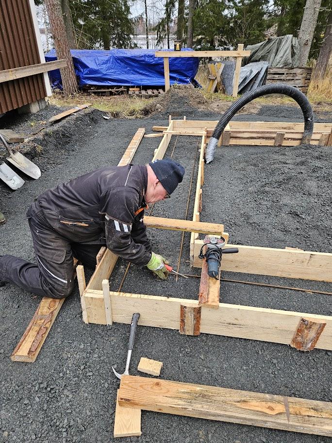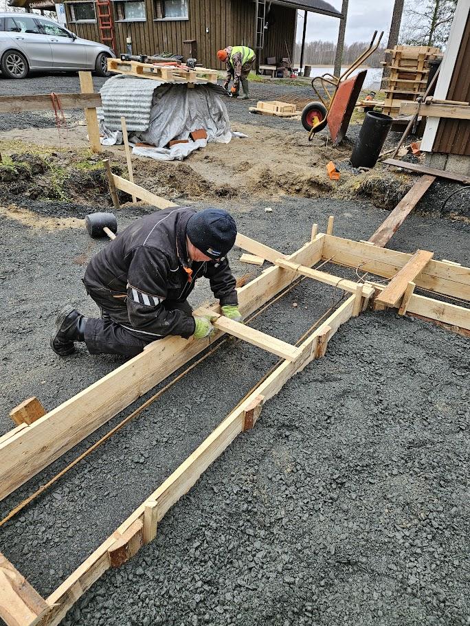 Muottien asennus, korkojen tarkistus ja muottien tukeminen