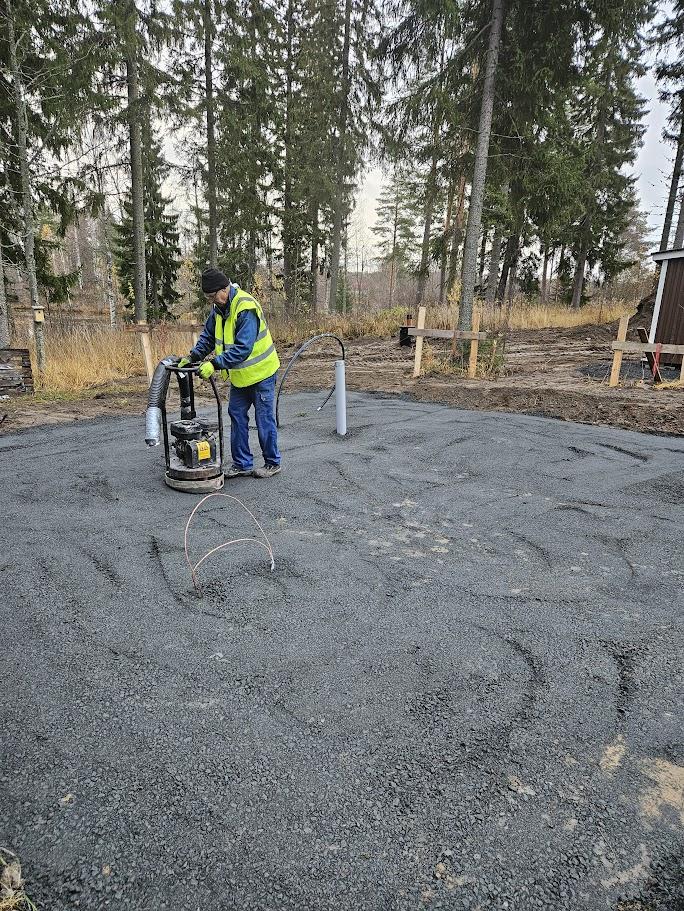 Talousrakennuksen pohjan tasoitus ja jyräys
