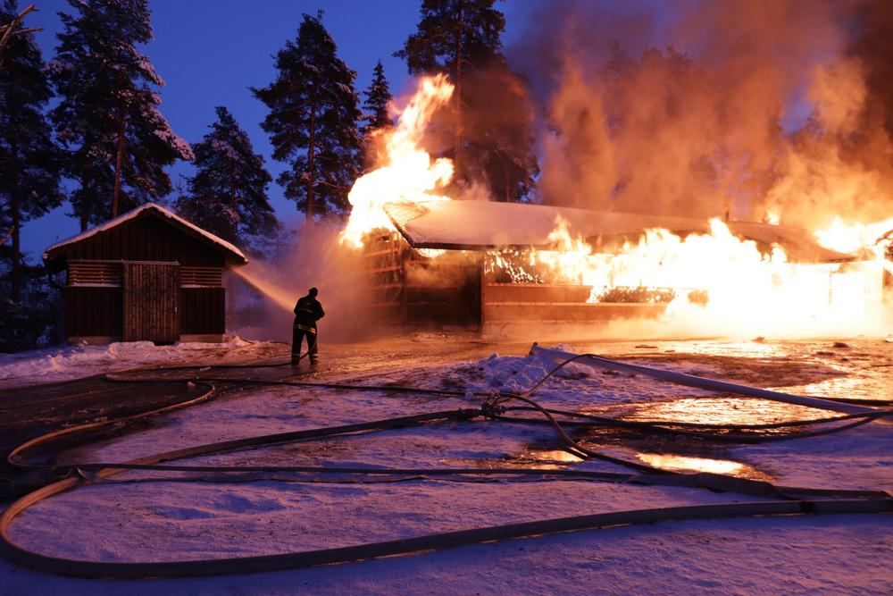 Väärnin Leirikeskuksen päärakennus oli lauantaina 4.12.2021 Pelastuslaitoksen koulutus- ja harjoituskohde. Päivän päätteeksi päärakennus poltettiin.
