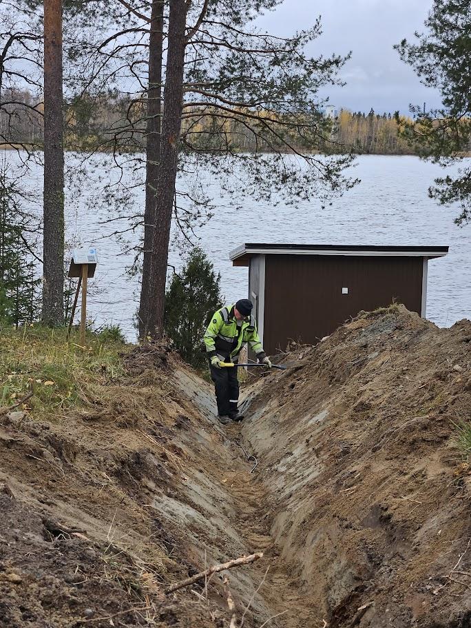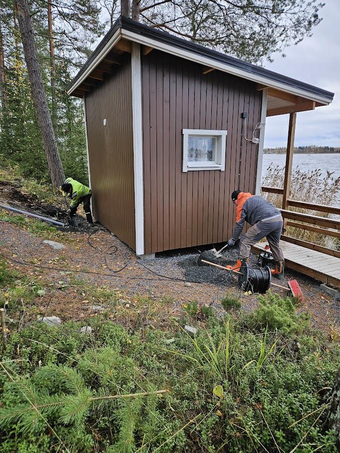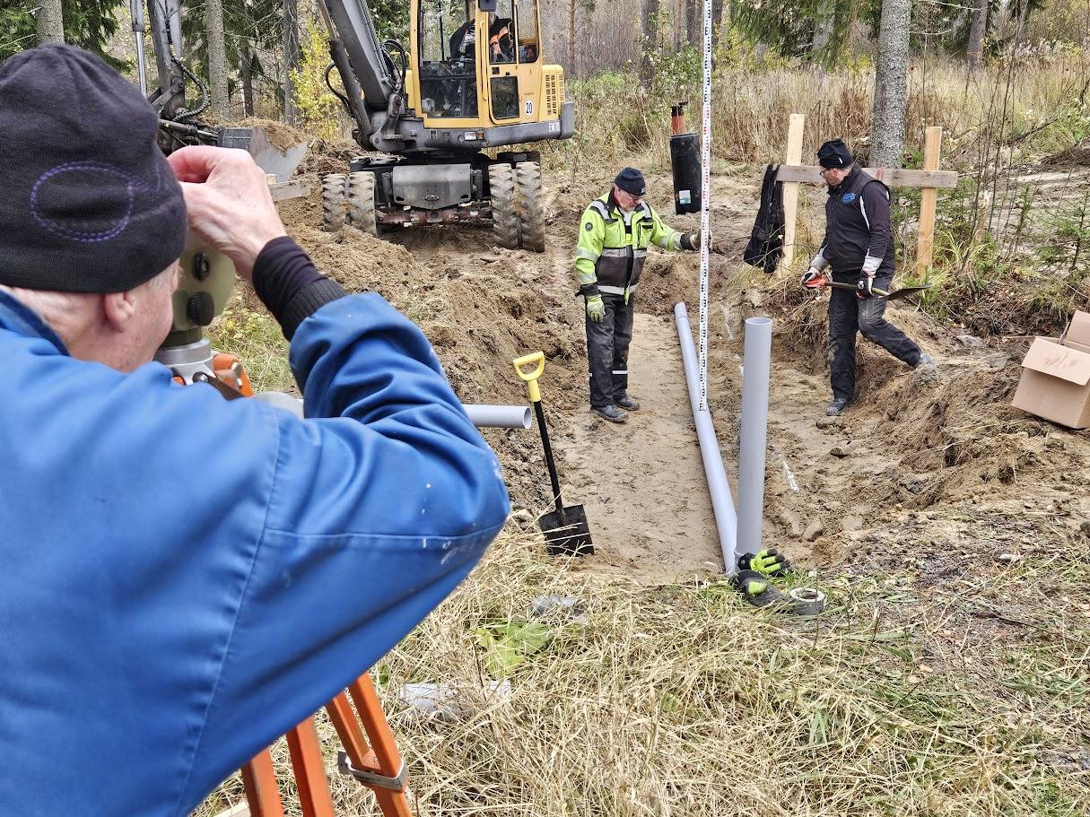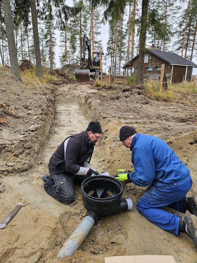 Tänään saimme asennettua kaikki sähkökaapelit sekä viemäri- ja vesiputket paikoilleen. Osa putkista sai myös Finfoam-eristyksen, ja kaivannot saatiin pääosin täytettyä.
