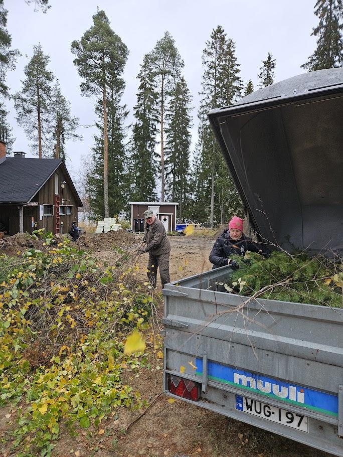 Talkoolaisista osa työskenteli hankeprojekteissa ja osa risusavotassa. Mukana oli yhteensä 12 talkoolaista, joista kaksi oli uusia kasvoja – lämmin kiitos kaikille mukana olleille! 🙏
