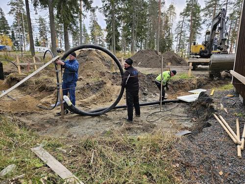 Talousrakennuksen pohjasta poistettiin pintamaat, ja pohjan viimeistely jatkuu keskiviikkona: vuorossa on suodatinkangas, Finnfoam-eristeet ja sepelikerros. Rakennuksen perustustyöt on alustavasti suunniteltu ensi kevääseen, sillä valaminen tässä vaiheessa olisi jo riskialtista pakkasten vuoksi.